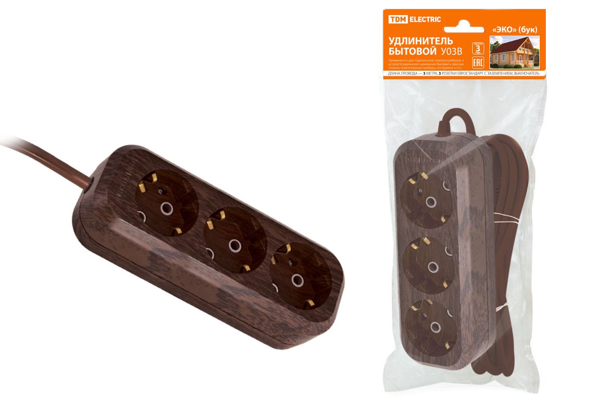 Удлинитель ТДМ SQ1303-3001 бытовой У03 3а 3м 2П+3 ПВС 3х1мм? Эко бук 16А/250В