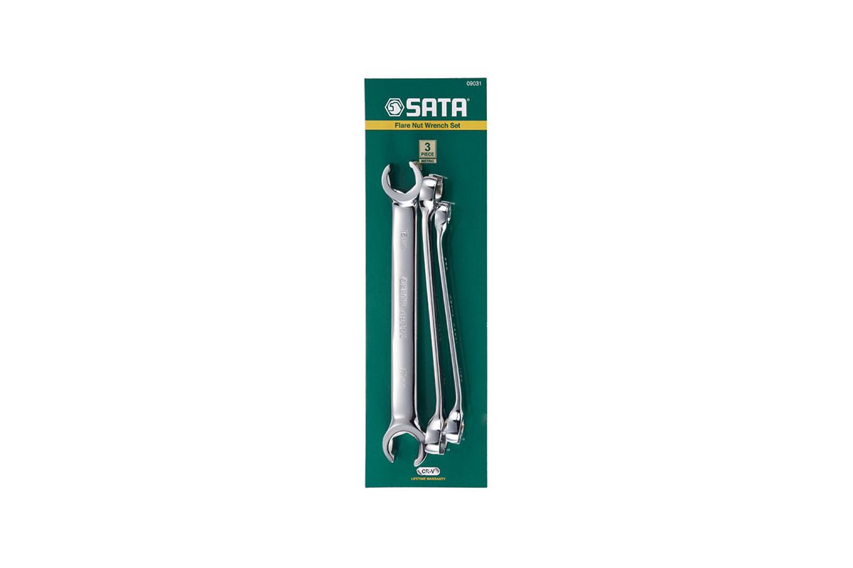 3PC FLARE NUT WRENCH SET (METRIC). Ключи метрические рожковые. Набор ключей Тип ключа рожковый для работы с накидными гайками: 9x11, 13x14, 16x17 мм. Преимуществом любого набора марки SATA является то, что любую его составляющую вы можете приобрести отдельно.