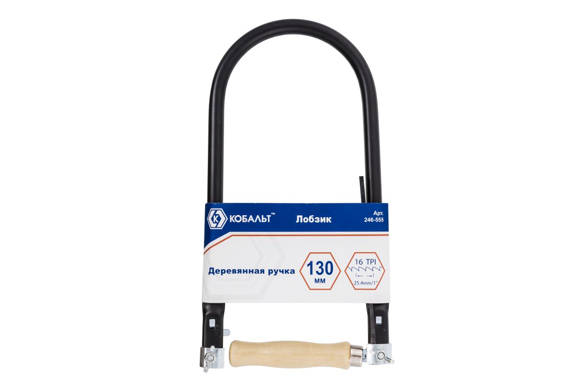 Лобзик ручной 130мм КОБАЛЬТ 246-555 предназначен для криволинейного выпиливания изделий из дерева, фанеры, OSB, пластика, плитки, мягких металлов при установке соответствующего полотна. Рамка круглого сечения изготовлена из углеродистой конструкционной стали с прямой складной деревянной рукояткой. Лобзик отличается небольшой массой в сочетании с простой конструкцией натяжения пилки путем сжатия рамки с фиксацией гайкой-барашком. В комплекте полотно по дереву из углеродистой инструментальной стали (HCS) с шагом зубов 1,06 мм (24 TPI) оптимальное для прямого и криволинейного пиления дерева, фанеры, OSB толщиной 3-15 мм. Длина общая/рабочая 260/130 мм, высота рамки 290мм.
