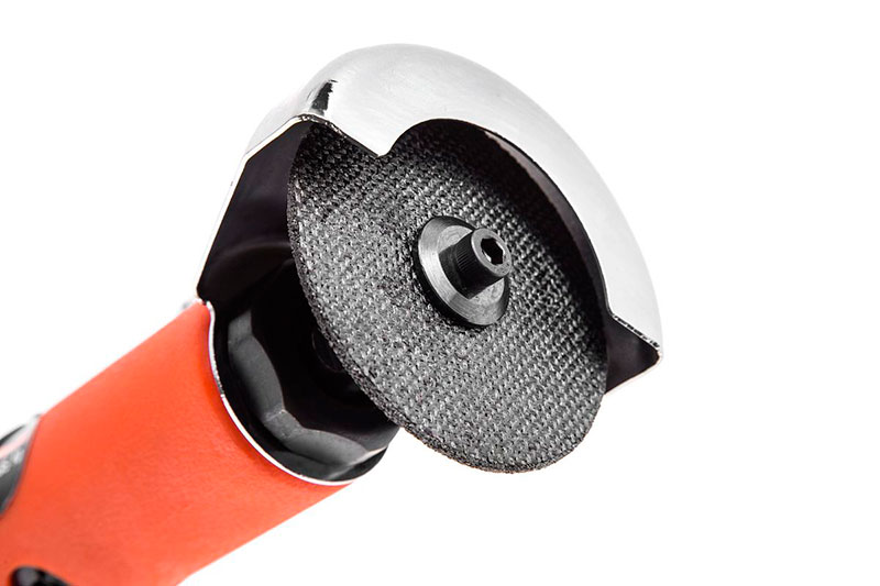 - Защитный кожух закрывает половину диска. Надёжно защищает пользователя от летящих искр, пыли и осколков.